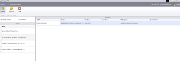 Sipariş verilmiş fakat daha teslim alınmamış malzemeler için aşağıdaki formdan faydalanır.