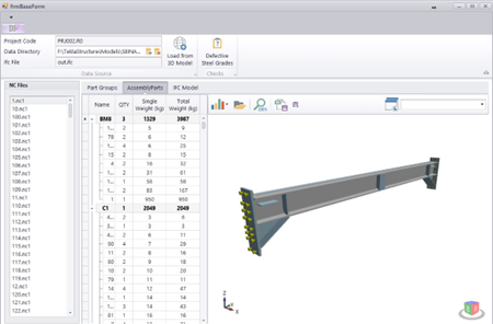 Projenin IFC dosyasını ve DSTV-NC dosyaları okunarak tekil ve montaj parçalarına ait bilgilere ulaşılır.