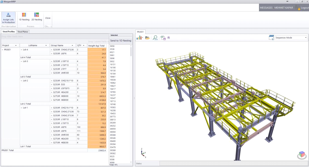 İmalatı yapılacak çelik yapıyı fazlara ayırmak